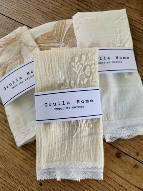 ✨ Deco Toalla, en género de gasa de algodón con estampa en relieve, delicada terminación con puntilla.