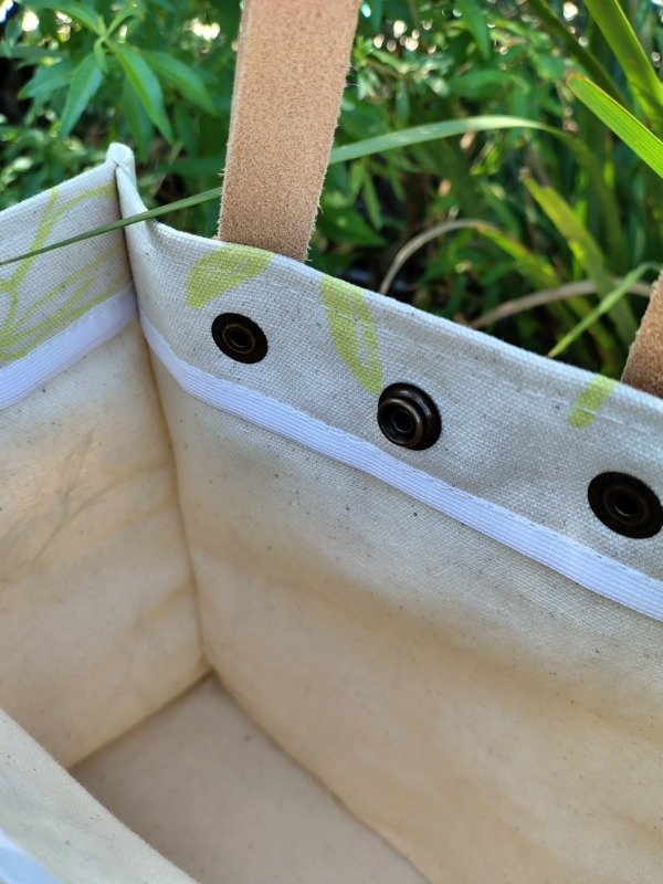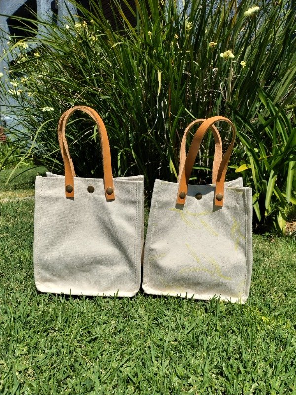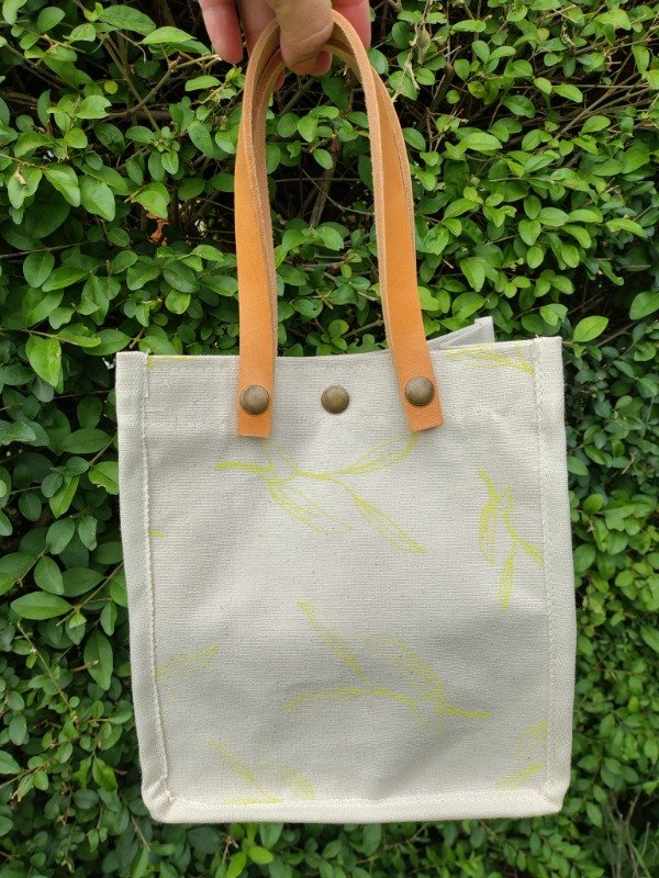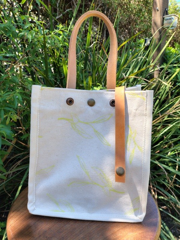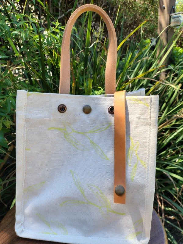 Género de lona de algodón, estampas artesanales en serigrafía diseño salvia, Manija de cuero desmontables.