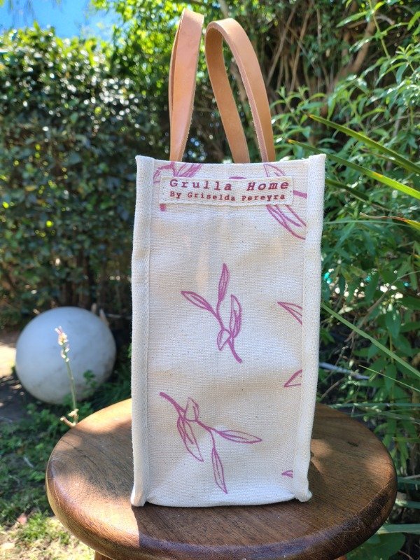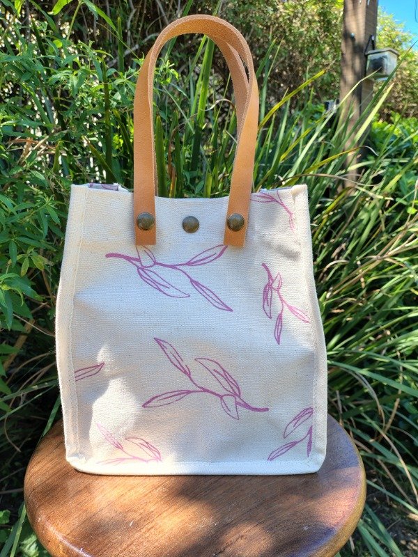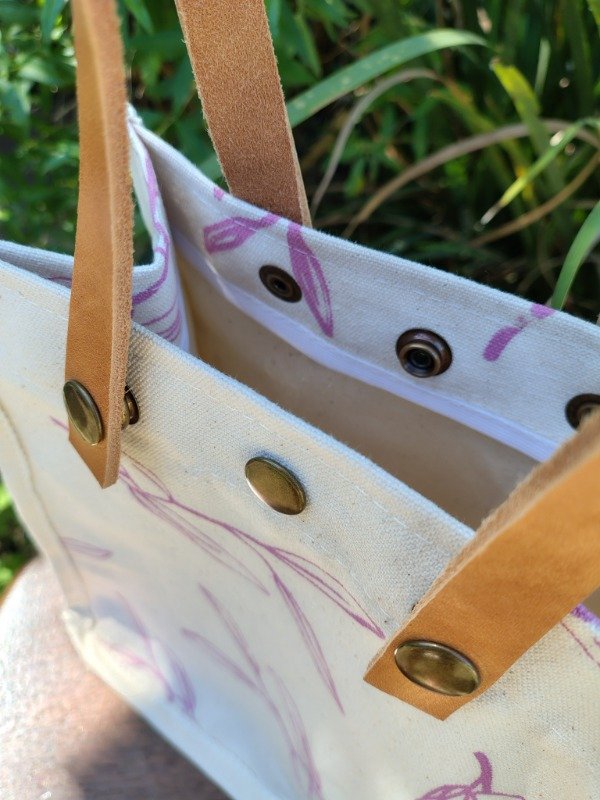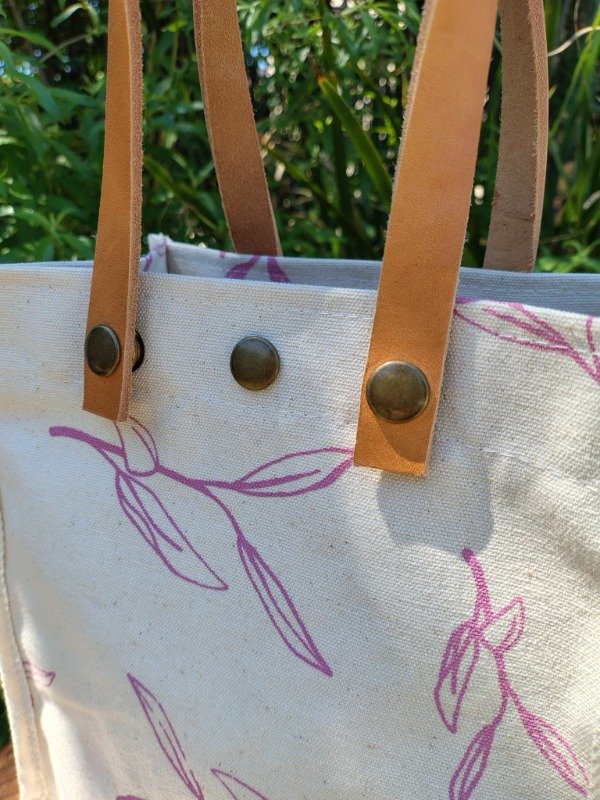 Género de lona de algodón, estampas artesanales en serigrafía diseño salvia, Manija de cuero desmontables.